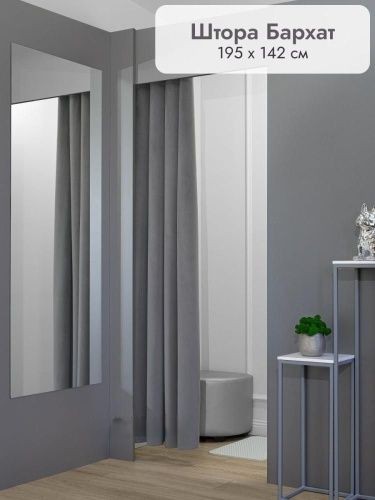 Краткое описание «Штора для примерочной и дома на люверсах бархатная цвет серый, 1 шт»