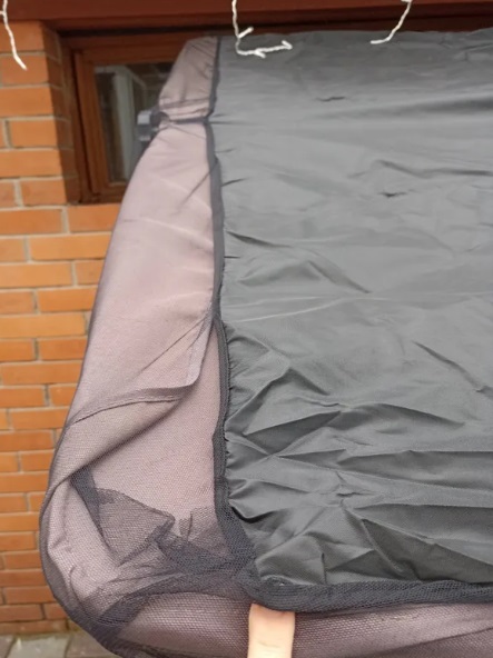 Москитная сетка пришита к полотну из ткани Оксорд 240d. Одевается сверху на тент-крышу (смотрите фото)Имеет молнию, расстегнув которые можно закрепить чехол в открытом положении.
